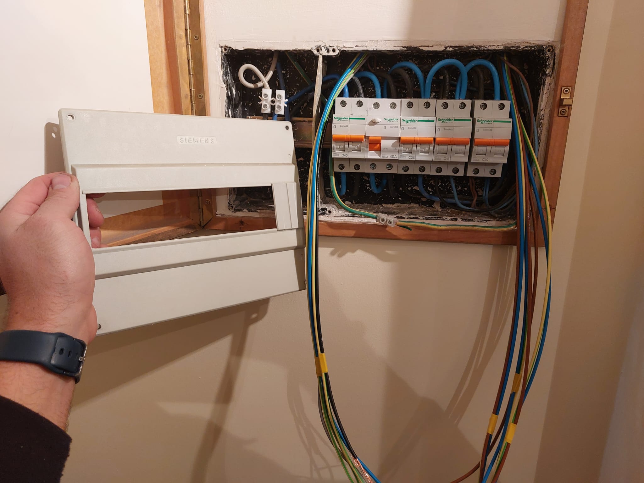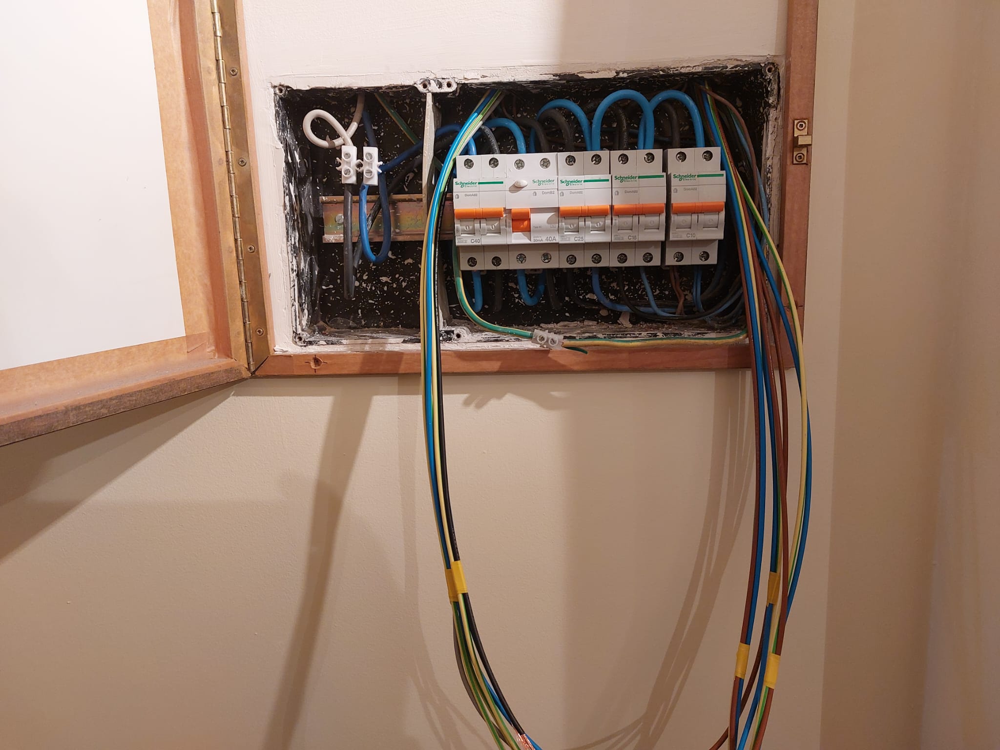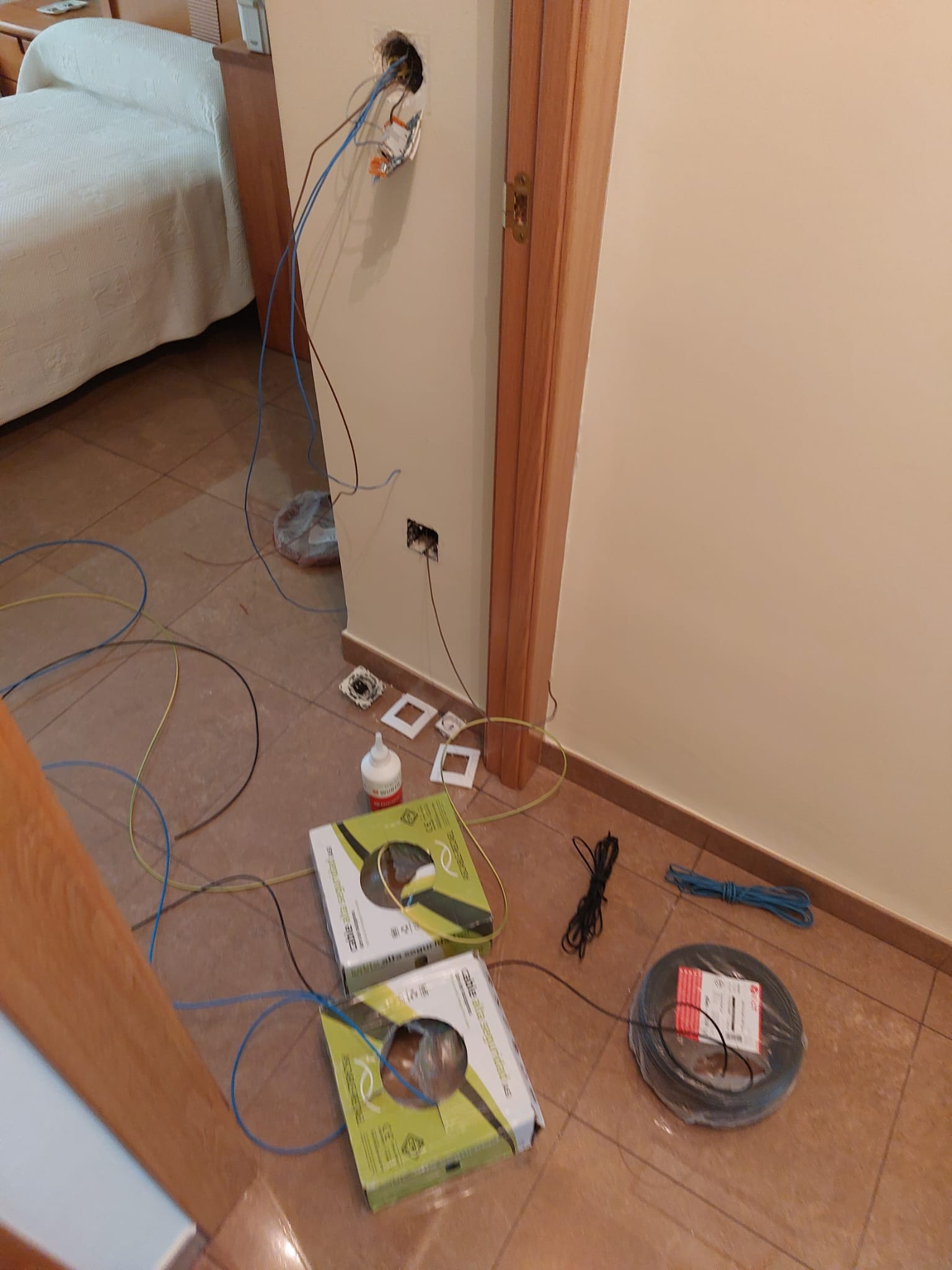 En esta instalación eléctrica hemos sustituido cableado eléctrico que no cumplía normativa y añadido circuitos independientes como los de los electrodomésticos de cocina.