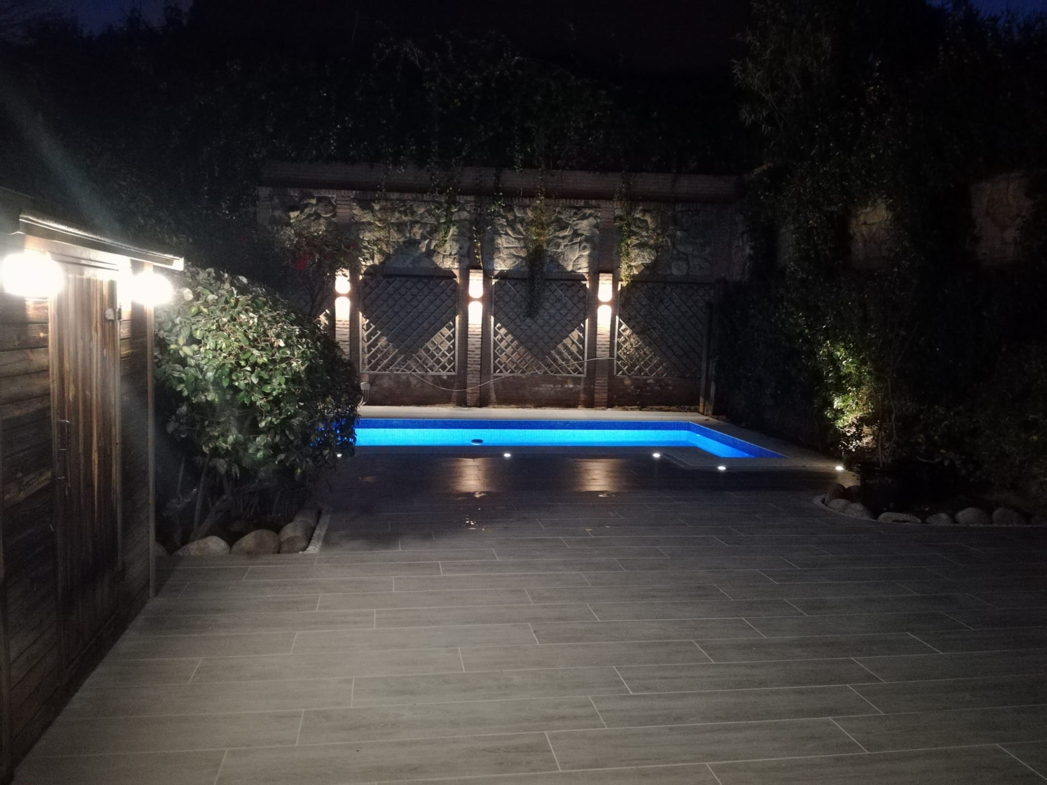 Instalación eléctrica para jardín y piscina con iluminación LED decorativas